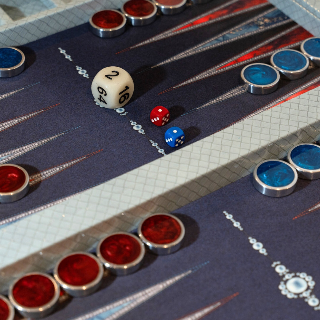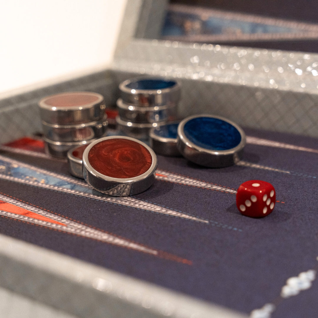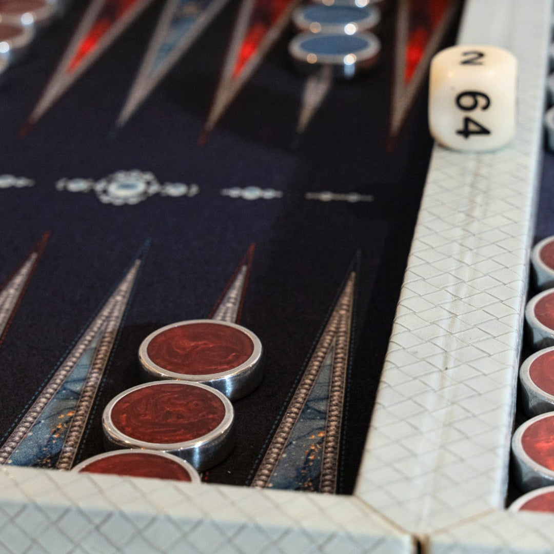 The Backgammon Olympia Pro is not for casual players. It’s a tournament-ready, 23-inch set made for serious matches and long-lasting use. Crafted with genuine leather and designed to handle countless hours of play, this is a backgammon set for those who appreciate both performance and aesthetics.