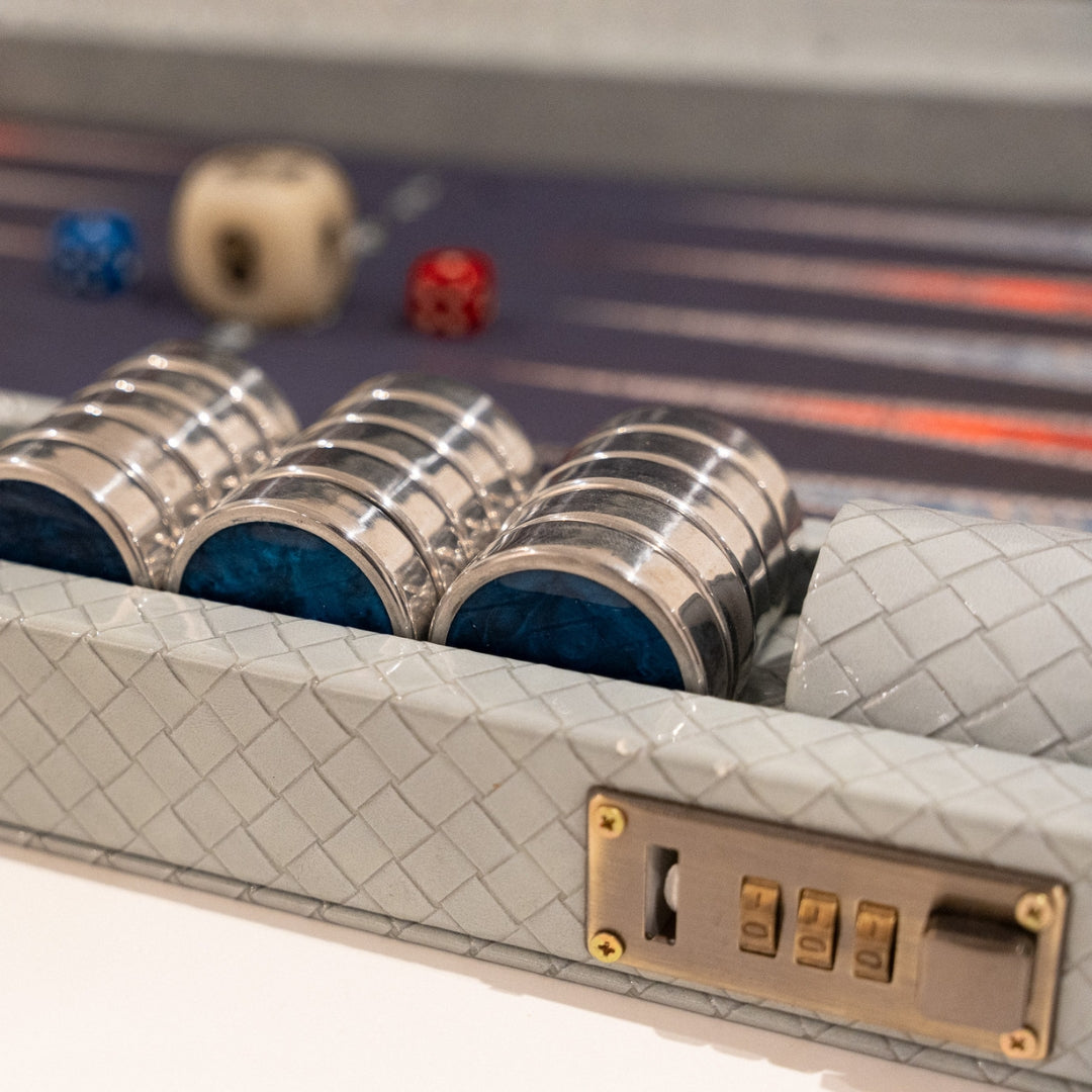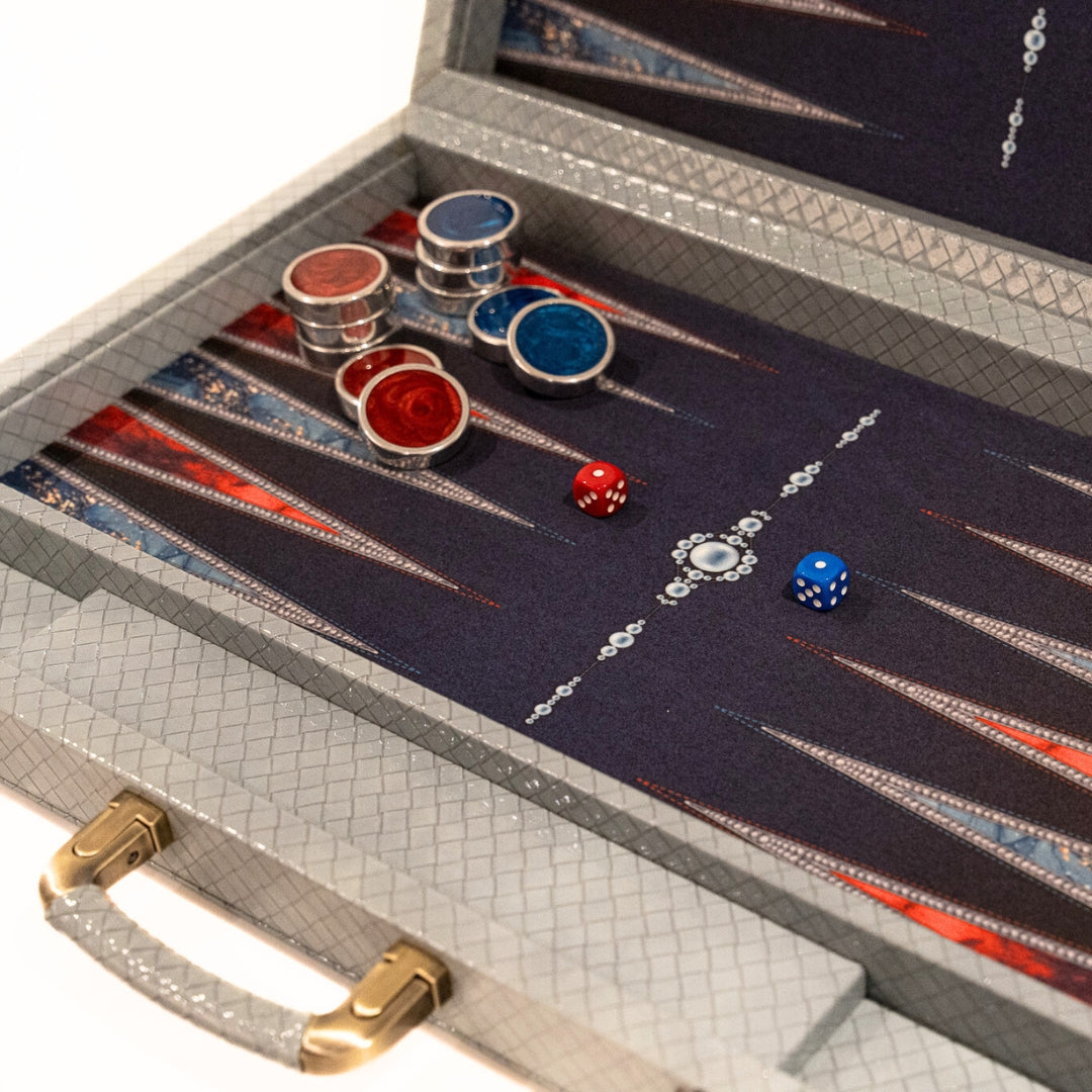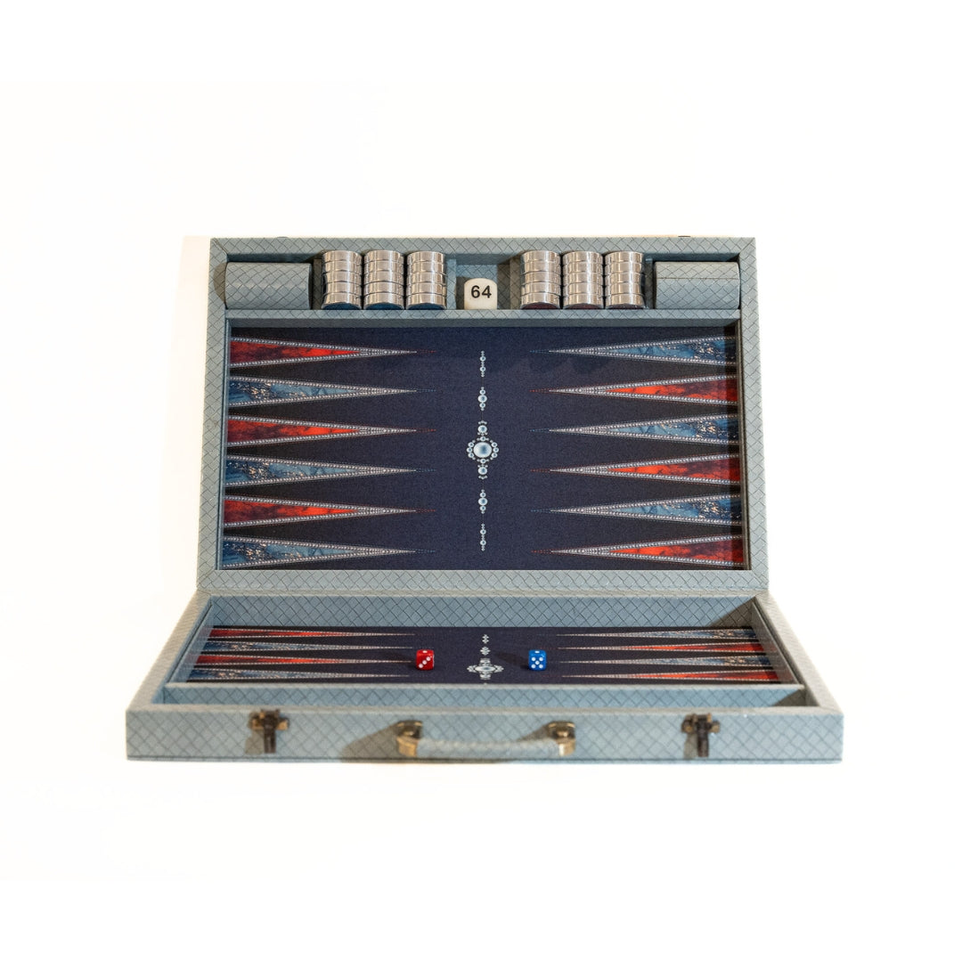 The Backgammon Olympia Pro is not for casual players. It’s a tournament-ready, 23-inch set made for serious matches and long-lasting use. Crafted with genuine leather and designed to handle countless hours of play, this is a backgammon set for those who appreciate both performance and aesthetics.
