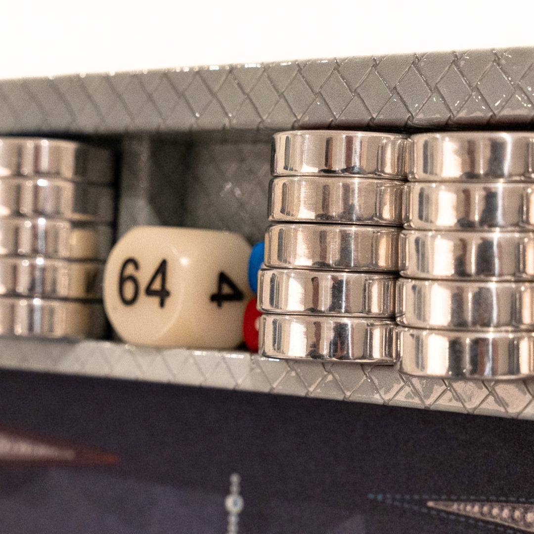 Every piece in this set has a purpose. The nickel-trimmed checkers are weighty and satisfying, gliding smoothly over the board. The professional-grade dice cups, lined with our V-Fiber™, ensure every shake is quiet and controlled—because the only thing you should hear is your opponent’s silence when they lose.
