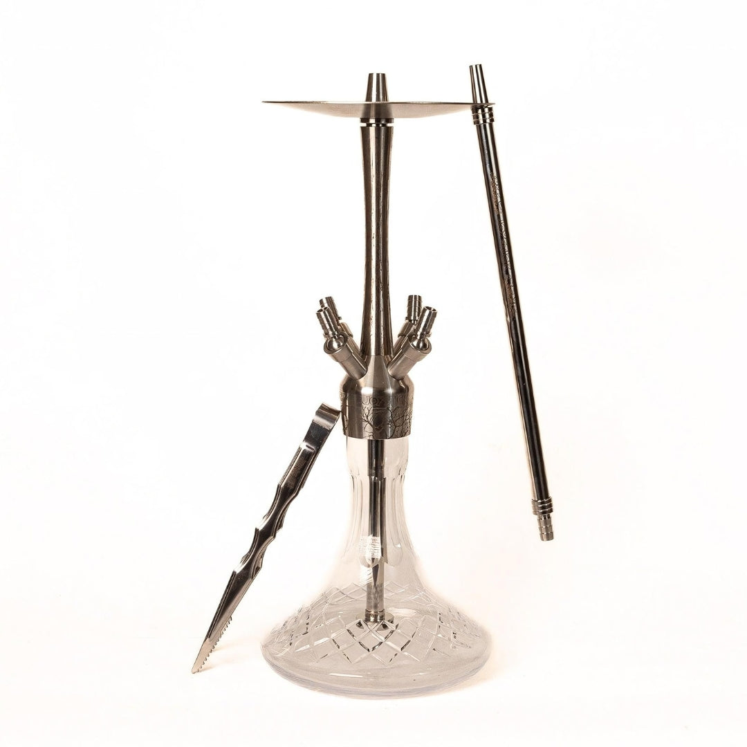 The diamond-etched glass base offers more than just stability—it’s a visual masterpiece that complements the minimalist chrome stem. Designed for clarity and strength, the glass allows you to monitor the water level at a glance, ensuring your hookah is always primed for performance.