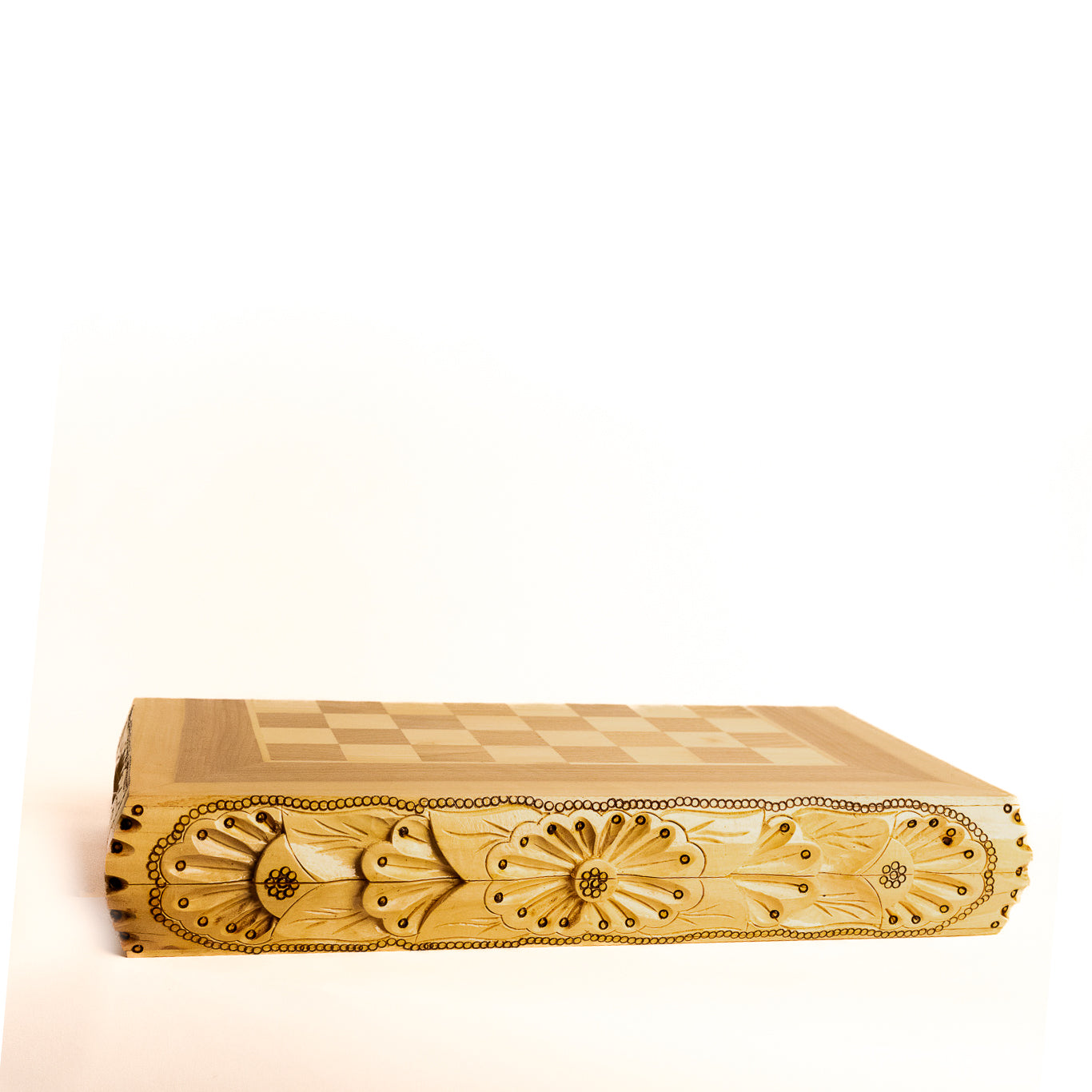 Crafted from the finest wood, this backgammon board is more than just a game – it's a celebration of heritage. The intricate carvings and inlaid patterns draw inspiration from timeless Arabic designs, making every game a journey through history.