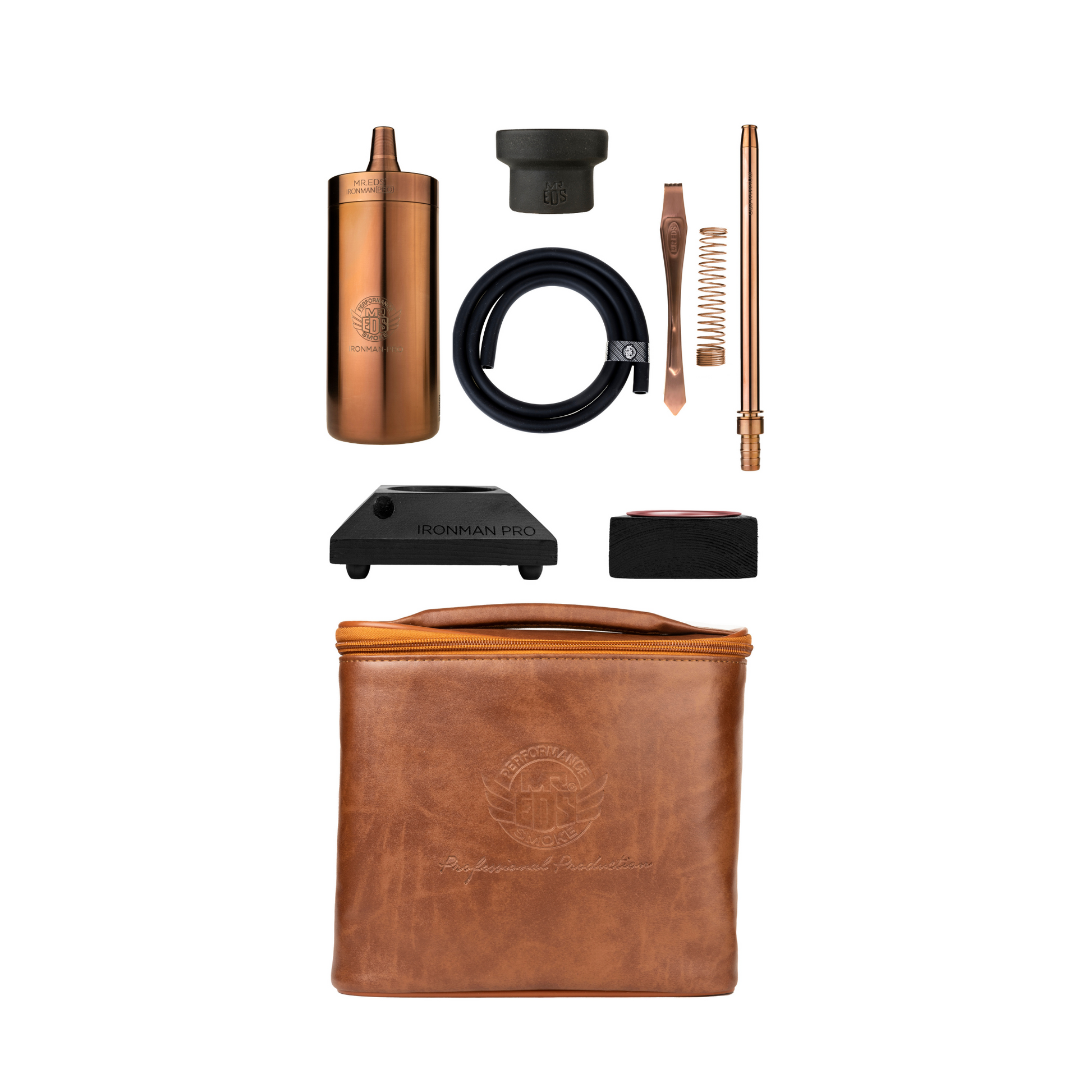 The Mr.Eds E50 Iron Man Pro Rose Gold Hookah Set is more than just a hookah; it's an experience in luxury and innovation, ideal for those who value quality, durability, and a sophisticated shisha journey.