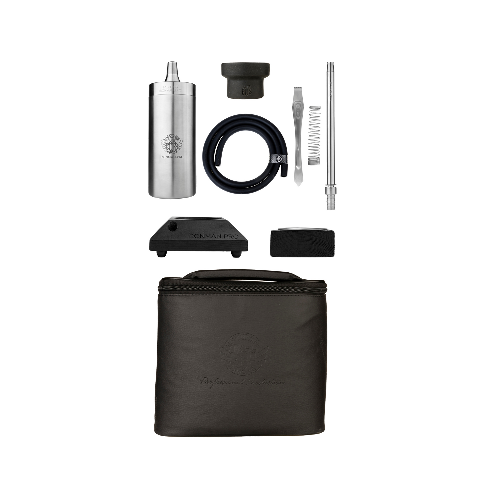 The Mr.Eds E50 Iron Man Pro Silver Hookah Set is more than just a hookah; it's an experience in luxury and innovation, ideal for those who value quality, durability, and a sophisticated shisha journey.