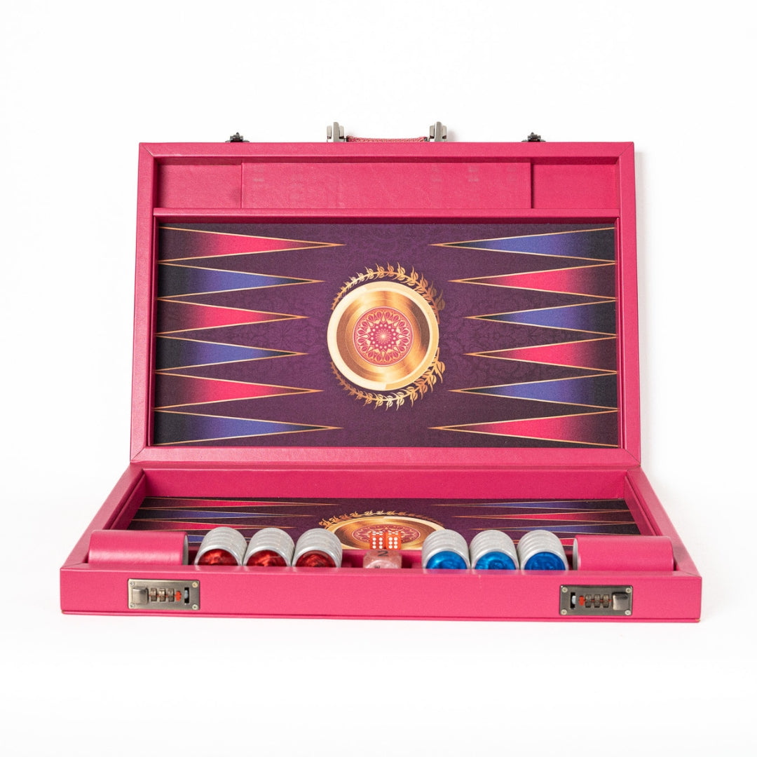 The Backgammon Olympia Pro is not for casual players. It’s a tournament-ready, 23-inch set made for serious matches and long-lasting use. Crafted with genuine leather and designed to handle countless hours of play, this is a backgammon set for those who appreciate both performance and aesthetics.